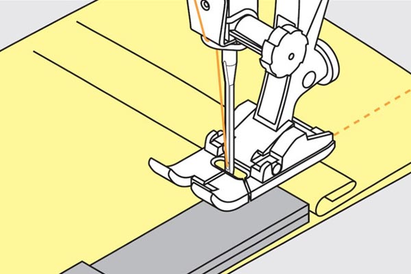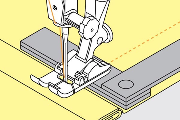 Quand vous arriverez sur une épaisseur, une partie de votre pied presseur peut se retrouver dans le vide et l’avancement est donc plus complexe. Placez alors cet accessoire sous votre pied (attention à l’aiguille) pour que votre pied soit bien à plat.