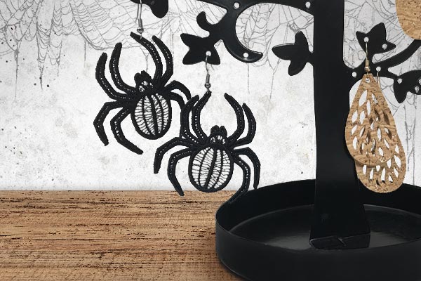Osez l’élégance ténébreuse avec des boucles d’oreilles brodées : petites toiles d’araignée, squelettes raffinés ou chauves-souris délicates, pour un Halloween chic et effrayant
