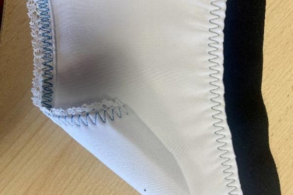 La dentelle peut également se poser avec une surjeteuse, une recouvreuse et également une machine combinée surjeteuse/recouvreuse.